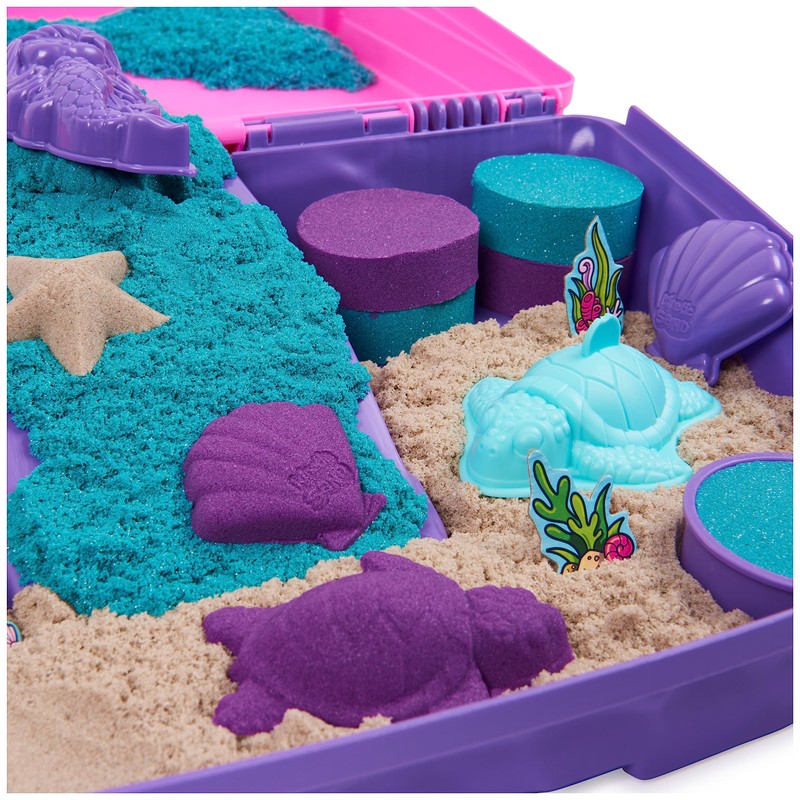 Kinetic Sand, Mermaid Palace Playset with 2.06lbs Play Sand (Neon Purple, Shimmer Teal & Beach), Tools & Folding Sandbox, Sensory Toys for Kids
