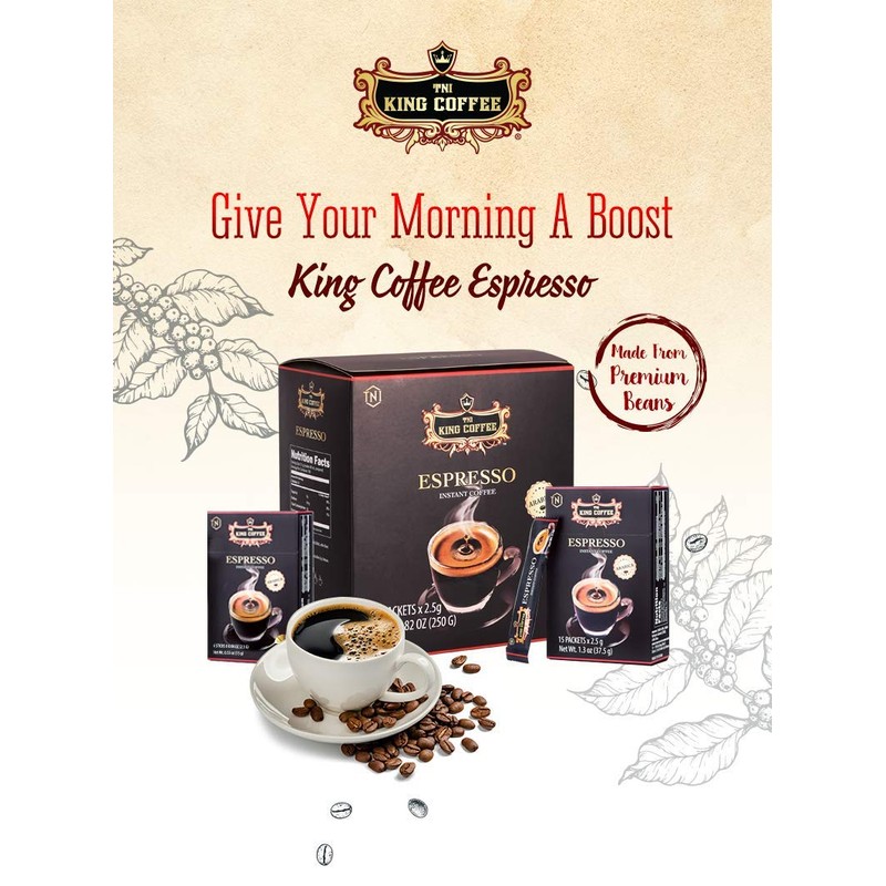 King Coffee Espresso, Vietnamese Instant Coffee Arabica, Medium Dark Roast, 15 Packets x 2.5g, Pack of 1