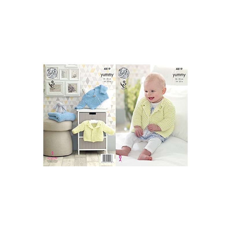 King Cole 4819 Knitting Pattern Baby Cardigans and Blanket in King Cole Yummy Chunky