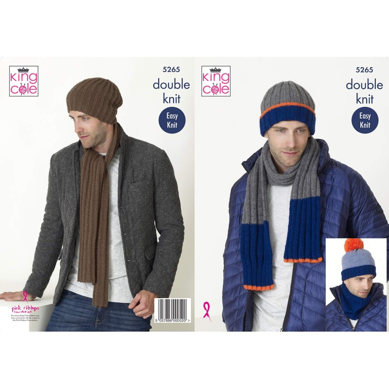 King Cole 5265 Knitting Pattern Mens Scarf Snood and Hats in Big Value DK