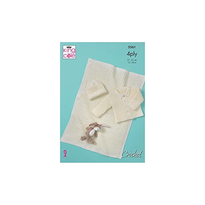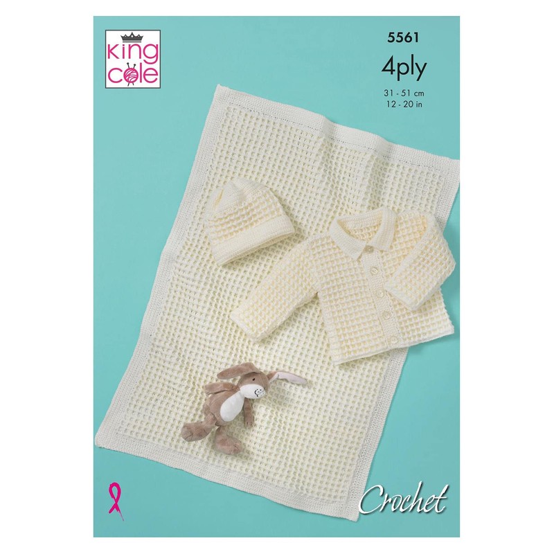 King Cole 5561 Crochet Pattern Baby Jacket Hat and Blanket in Big Value Baby 4 Ply
