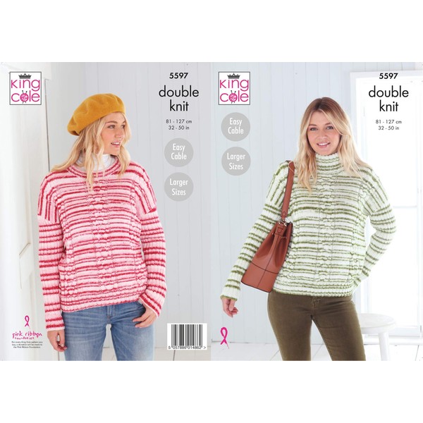 King Cole 5597 Knitting Pattern Womens Easy Cable Sweaters in Stripe DK