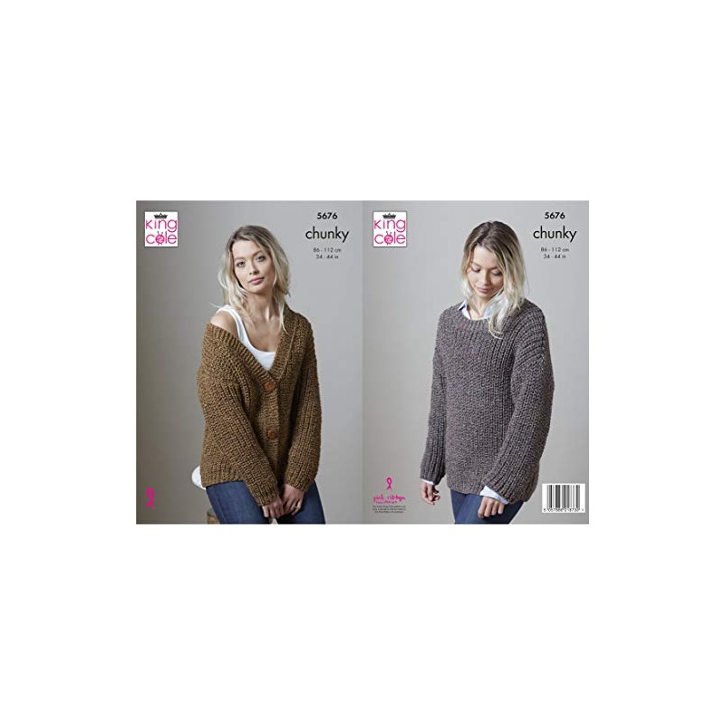 King Cole 5676 Knitting Pattern Womens Sweater and Cardigan in Big Value Poplar Chunky