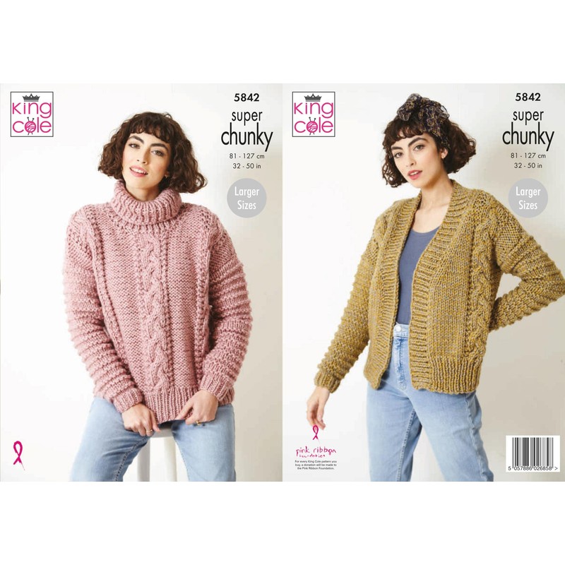King Cole 5842 Knitting Pattern Womens Sweater and Jacket in Big Value Super Chunky Stormy