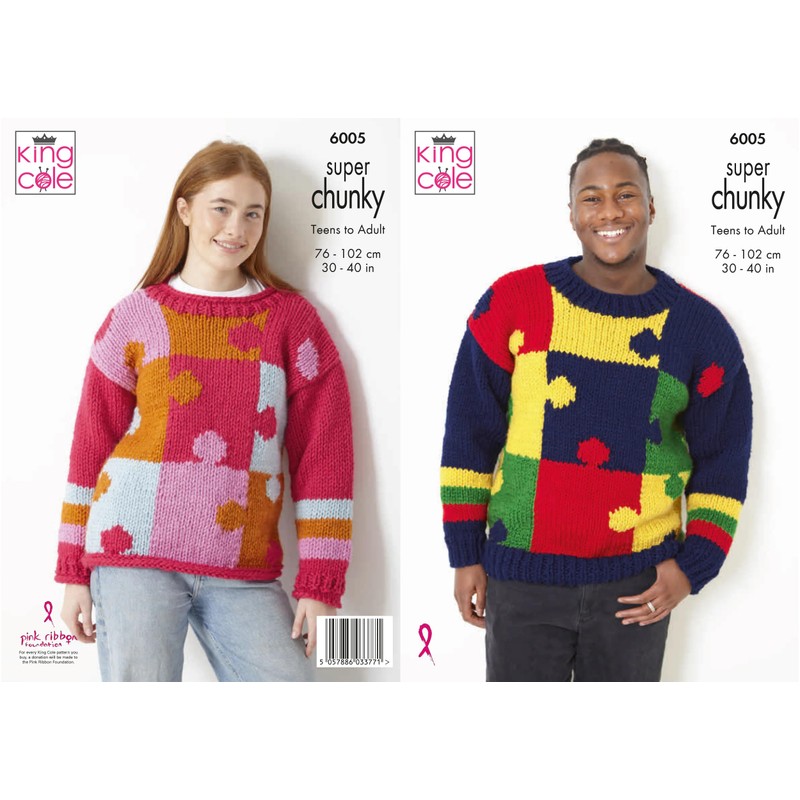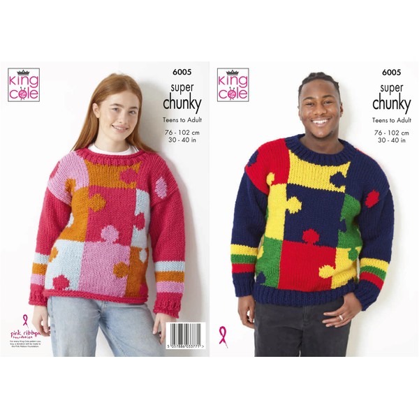 King Cole 6005 Adult Super Chunky Knitting Pattern is a beautiful jigsaw jumper for you to create.