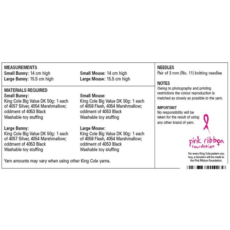 - The following designs are featured in this leaflet: Easy Knit Bunnies and Mice. Size Information: Various Sizes
