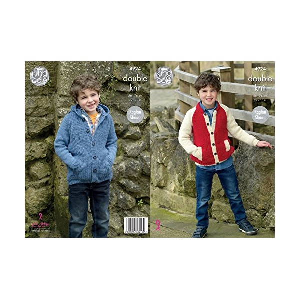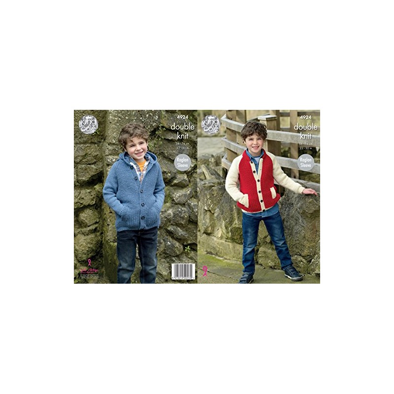 King Cole Boys Double Knitting Pattern Childrens Raglan Sleeve Jacket & Hoodie (4924) Multicolor,22" - 30" chest