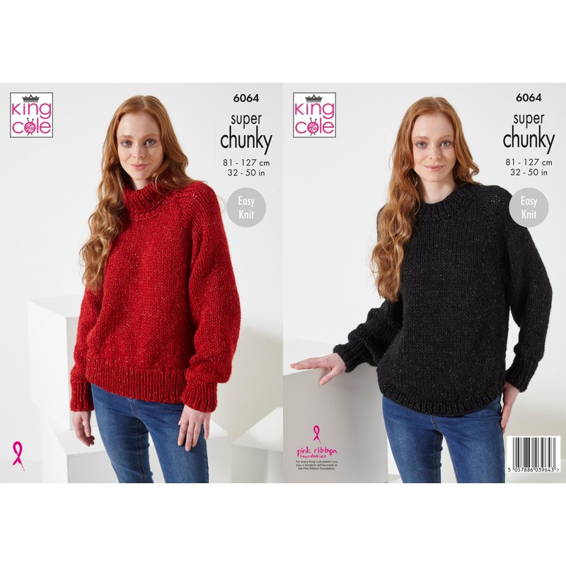 - The yarn requirements for the garments in this leaflet are as follows: Polo Neck Sweater to fit bust 32" - 34" [36" - 38": 40" - 42": 44" - 46": 48" - 50"] use King Cole Celestial Super Chunky 100g - Mars (5624) 6 [6: 7: 7: 8] balls. Round Neck Sweater to fit bust 32" - 34" [36" - 38": 40" - 42": 44" - 46": 48" - 50"] use King Cole Celestial Super Chunky 100g - Space Black (5621) 5 [6: 6: 7: 7] balls.