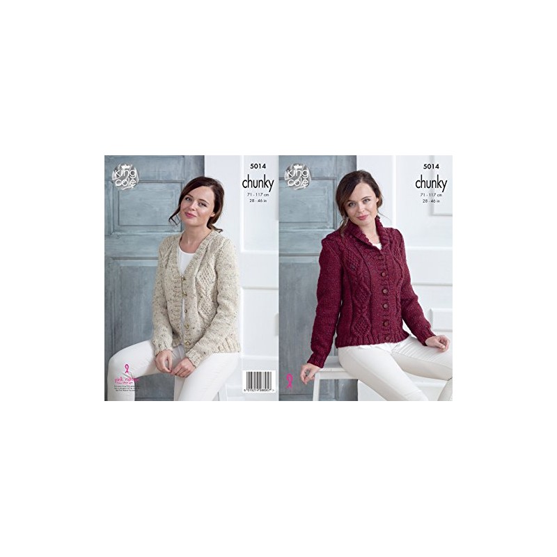 King Cole Ladies Chunky Knitting Pattern Womens Cabled V Neck or Collar Cardigan (5014)