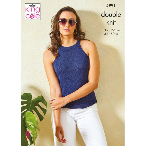 - This double knit knitting pattern leaflet 5991 by King Cole will instruct you on how to create a lady's racer neck top in a stocking stitch or cabled panel design.
