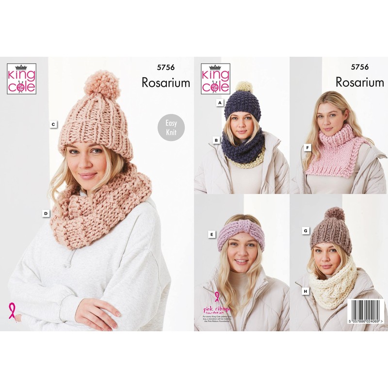 King Cole Ladies Rosarium Mega Chunky Knitting Pattern Easy Knit Headband Snood & Hat (5756)