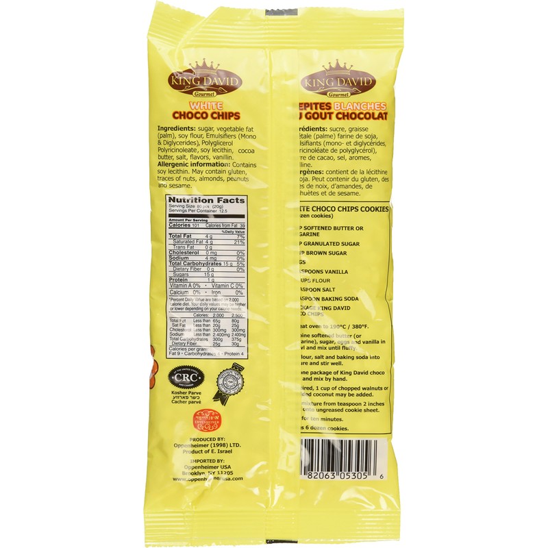 King David Vegan Lactose-Free Non-dairy Kosher White Chocolate Flavored Chips...
