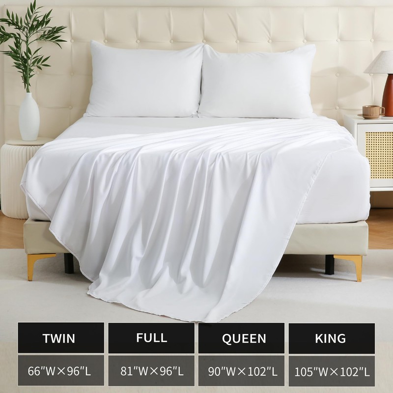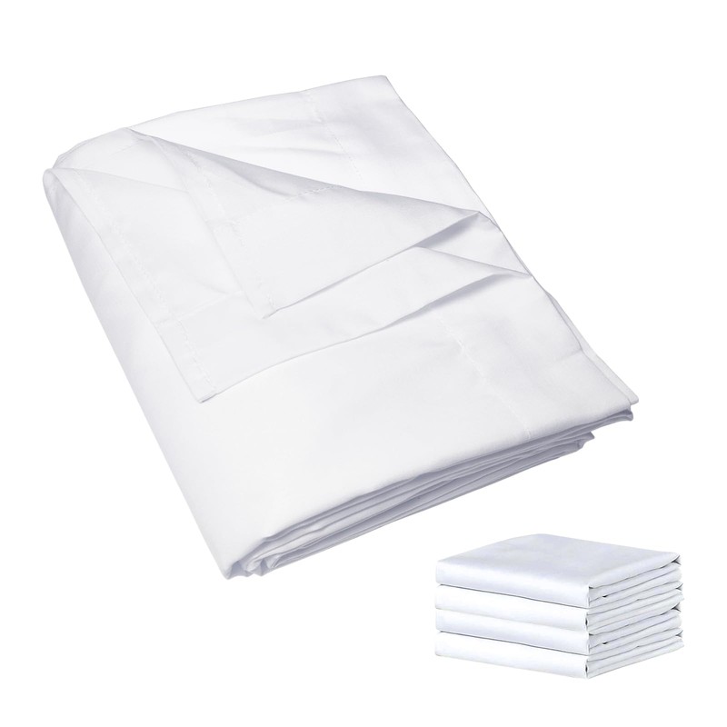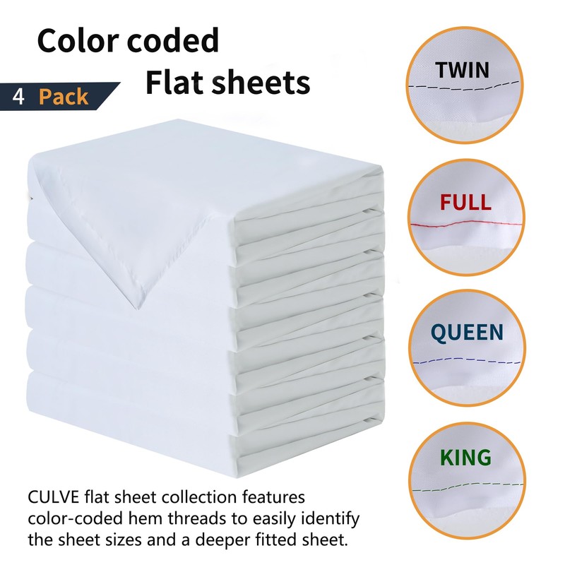 King Flat Sheet Only, 4 Pack White Top Bed Sheets, Soft Breathable Brushed Microfiber Color-Coded Hem Threads, 105x102