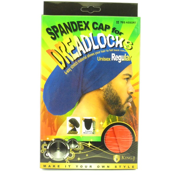 This King.J unisex spandex cap for dreadlocks offers a 4-way ultra-stretch, breathable lightweight material that allows your hair to fall back naturally. This regular size covers most locks, protects hair from breakage and preserves your hairstyle and stays in place during sleep and high impact activity.
