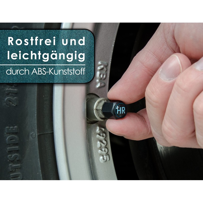 - Rust-free ABS material: a metal valve cap corrodes when wet and "eats" on the tyre valve; thanks to the ABS plastic, the valve covers remain smooth and rust-proof.