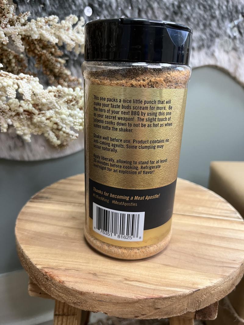 This one packs a nice little punch that will make your taste buds scream for more. Be the hero of your next BBQ by using this one as your secret weapon! The slight touch of jalapeno cooks down to not be as hot as when eaten outta the shaker.