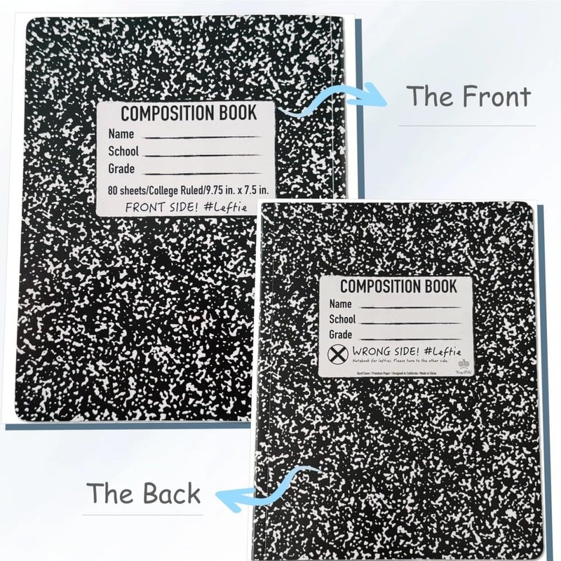 - Our lefty composition notebook is made of acid-free, 70 GSM finch opaque body paper.