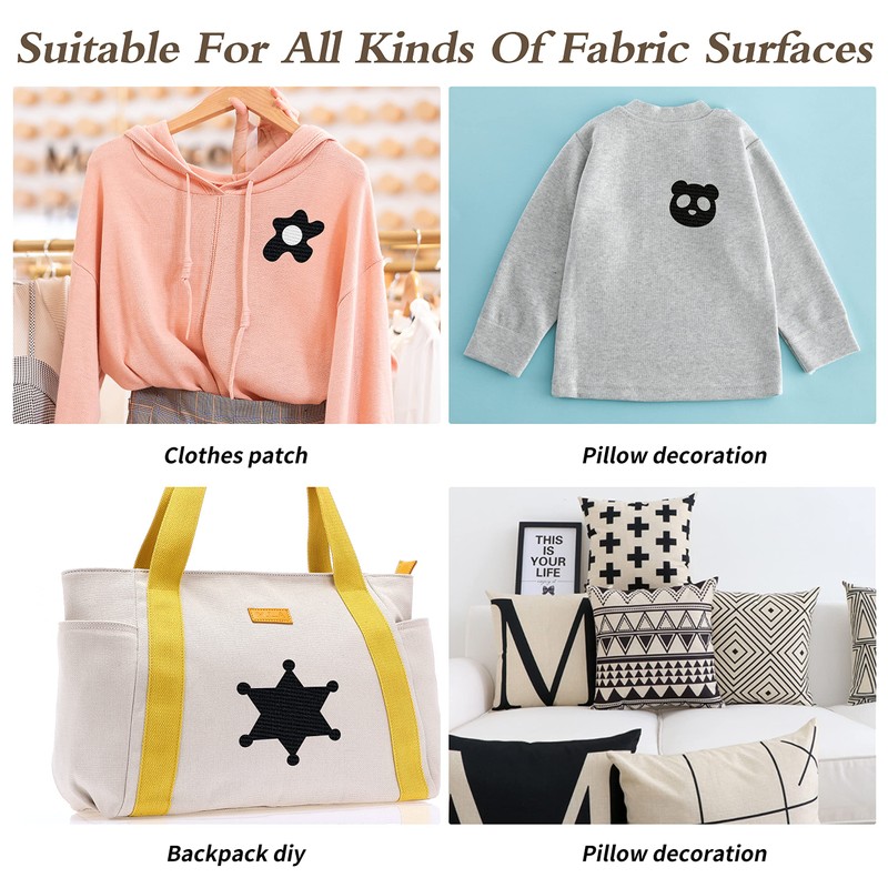 - DlY FABRIC PATCH: Enough size and quantity for you to play with your unlimited creativity. With either scissors or shape cutters, cut the patch to the size or shape you want. Design to decorate your favorite clothes.This fabric patch is good for both inside and outside,and after a few more washes the glue disappears, but the patch still stays on the clothes firmly.