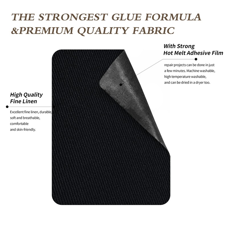 - QUALITY MATERIALS: high quality pure cotton fabric,strong hot melt adhesive film. After repair the clothes can be washed by machines. High temperature and wear resistant, no need to worry about patch shrinkage. Don't have to worry if the patch falls off, just re-iron will be okay.To achieve the best performance, pay extra attention to the hips and joints when applying.