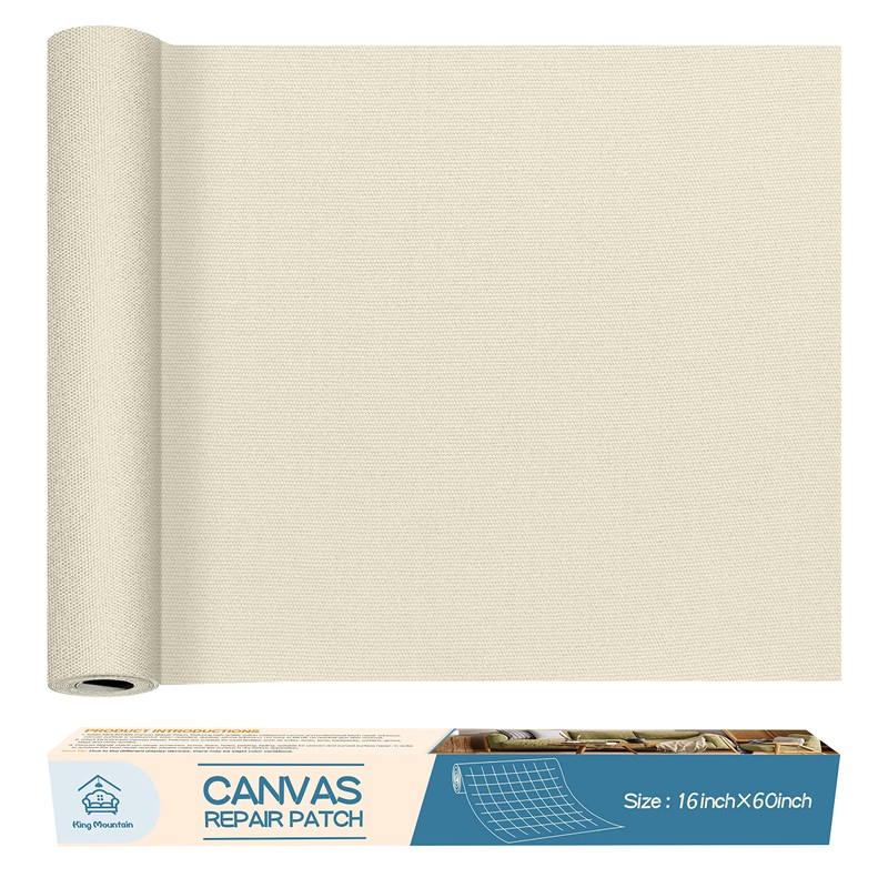 KING MOUNTAIN Canvas Repair Patch 16×60 Inch Self-Adhesive Waterproof Fabric Patch for Sofas, Tents, Furniture,Tote Bags, Car Seats (Beige)
