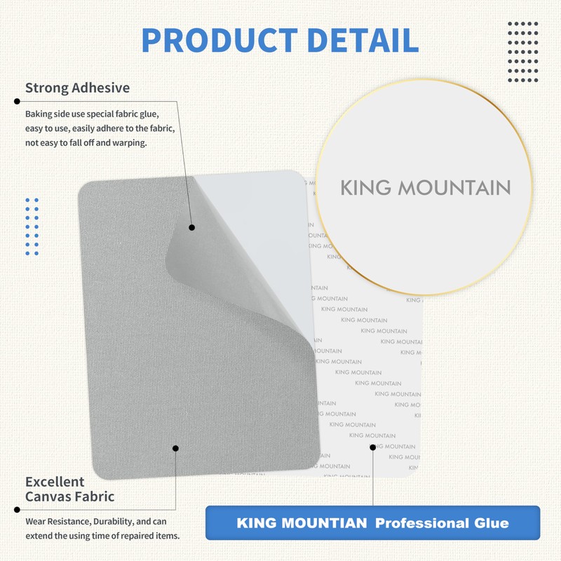 KING MOUNTAIN Canvas Repair Patch 9 x11 Inch 2 Pcs Self-Adhesive Waterproof Fabric Patch for Sofas, Tents, Furniture,Tote Bags, Car Seats (Grey2.0)