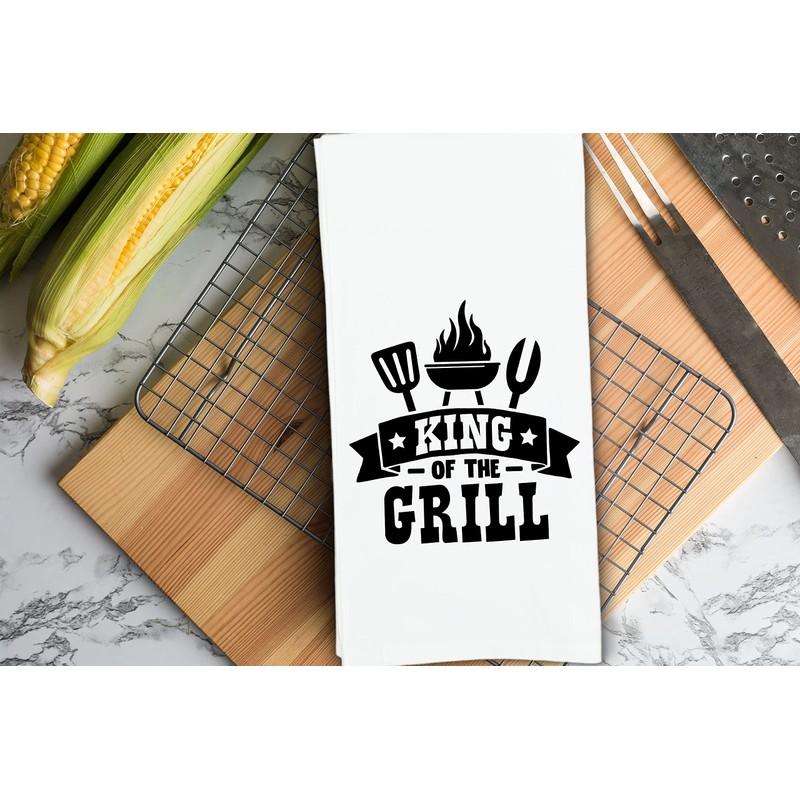 King of the Grill Set of 3 Grilling Towels with Hanging Loop - 100% Cotton Flour Sack Towels - BBQ Father's Day Gift Idea for Men Dad Grandpa