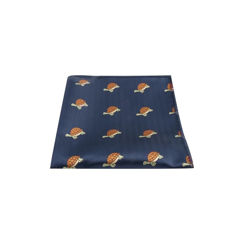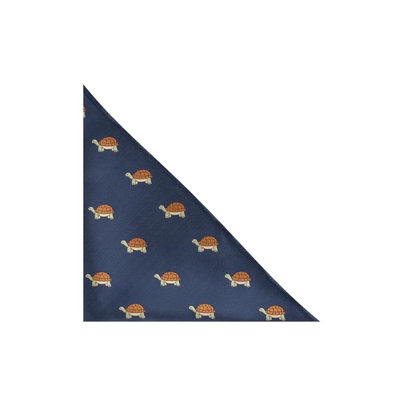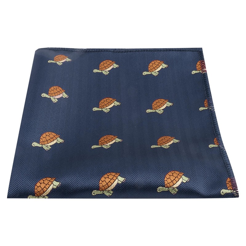 King & Priory Tortoise Navy Blue Herringbone Embroidered Pocket Square, Handkerchief