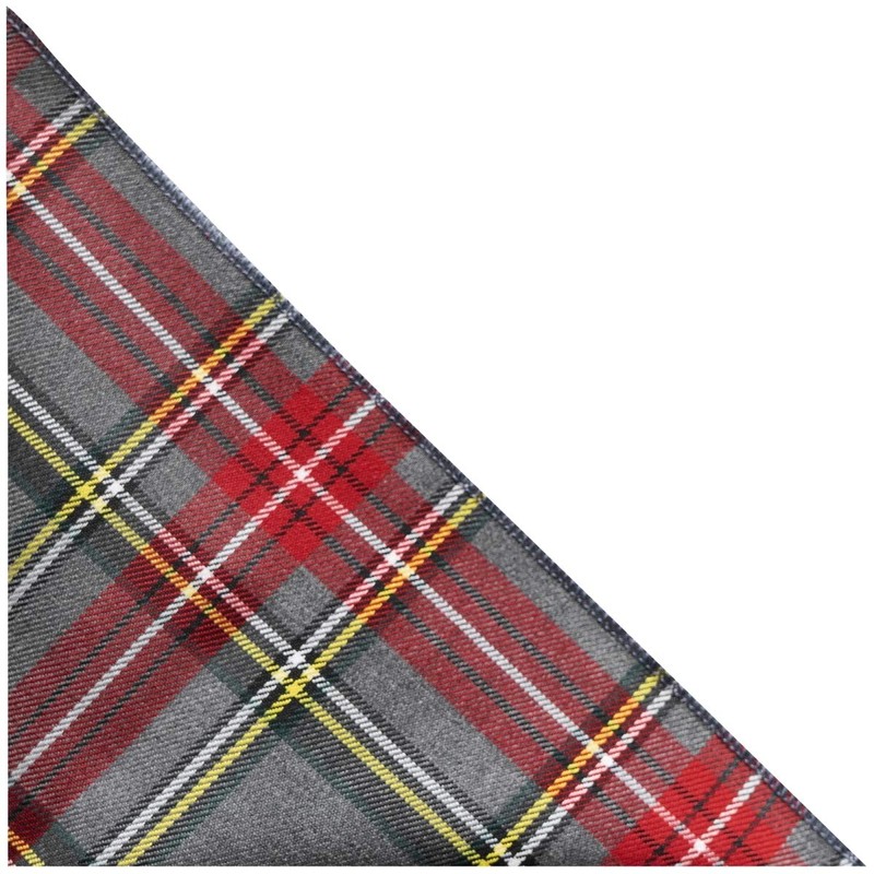 King & Priory Traditional Light Grey & Red Tartan Pocket Square, Handkerchief, Check, Plaid