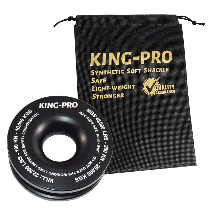KING-PRO Snatch Recovery Ring, 45000 lbs Winch Snatch Block Pulley Towing Ring, for ATV UTV SUV Truck Off-Road Vehicle Towing Soft Shackle Recovery(Black), 3.8''X3.8''X1.2'' (AMZ-KP-01005-BL)