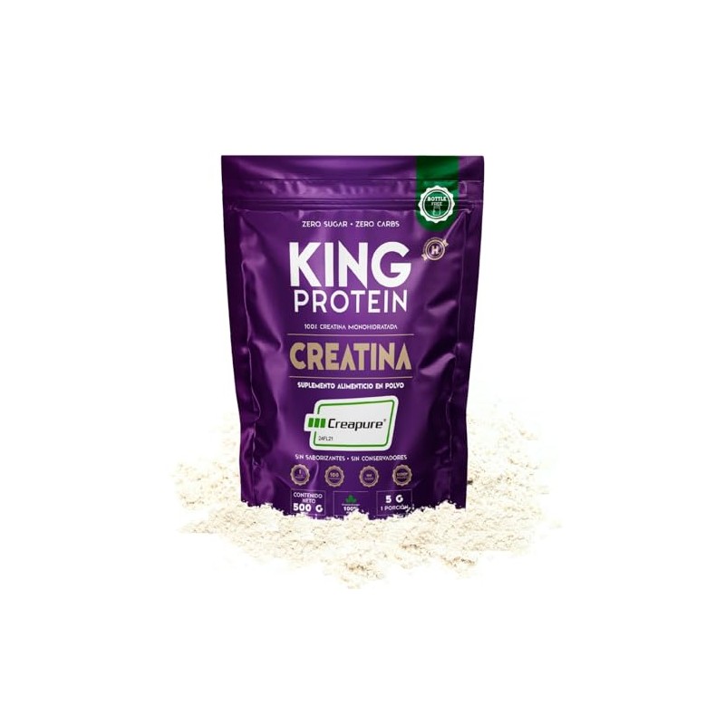 🌟 ⭐ KING Protein Creatina Monohidratada 100% Pura Sin Sabor | 5g por porción | Vegana y sin azúcar | Polvo de Creatina Monohidratada Creapure® con scoop incluido | Bolsa de 500g, 100 porciones ⭐ 🌟