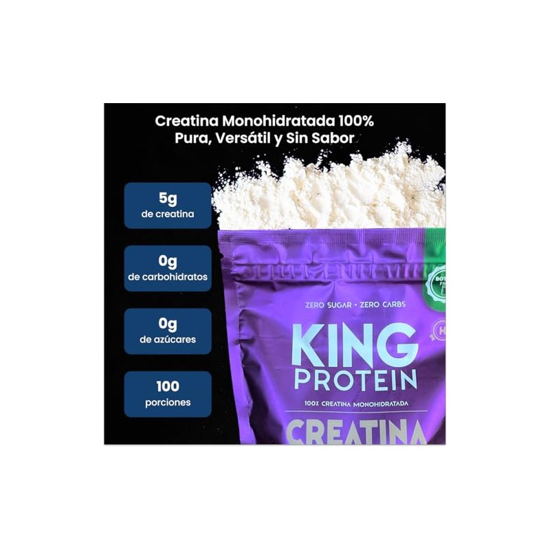 KING Protein Creatina Monohidratada 100 Pura Sin Sabor 5g por porcin Vegana y sin azcar Polvo de Creatina Monohidratada Creapure con scoop...
