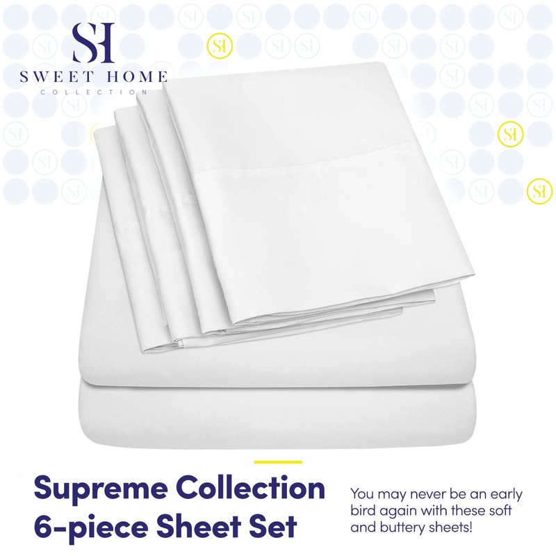 King Size Bed Sheets - 6 Piece 1500 Supreme Collection Fine Brushed Microfiber Deep Pocket King Sheet Set Bedding - 2 Extra Pillow Cases, Great Value, King, White