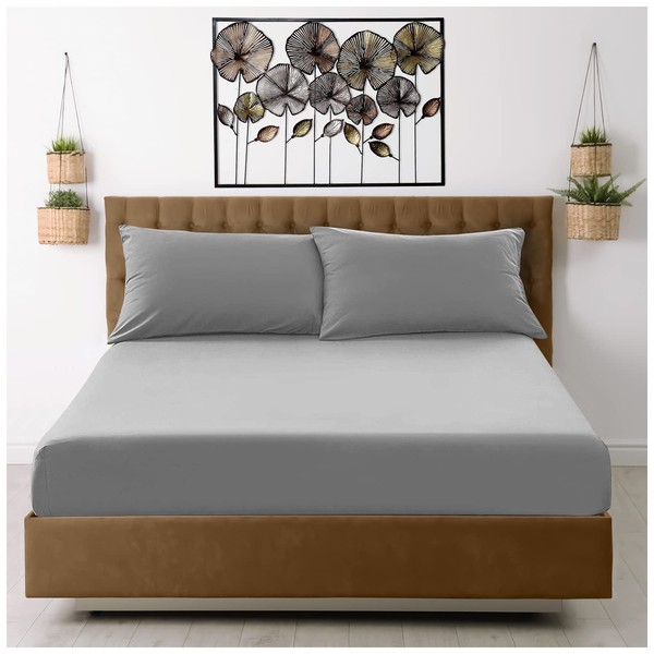King Size Fitted Sheet Grey - Plain Bedding Sheet With Elastic Corner - Polyester Fabric Bedsheet
