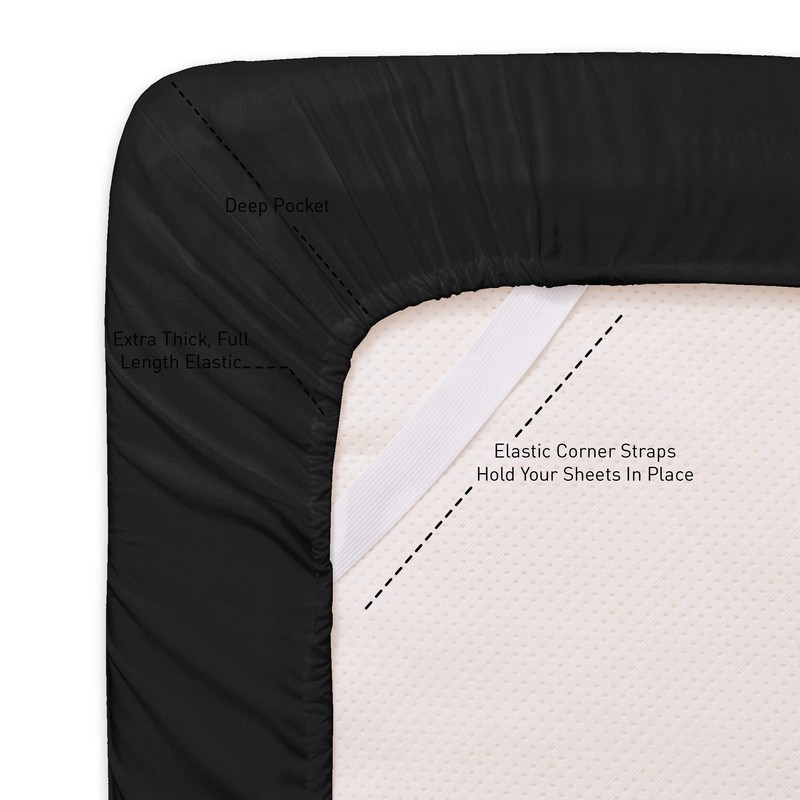 • ELASTIC CORNERS BUILT IN - What separates our bed sheets from the rest are the special elastic sheet straps built in. These elastic corners keep your fitted sheet secure to the bed and come on all of our sheets.