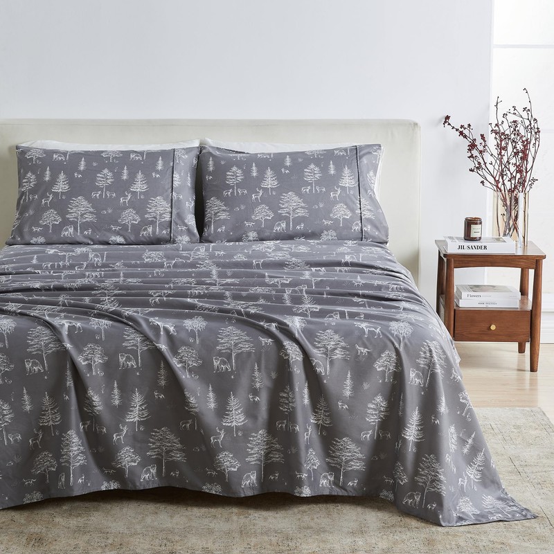 Decorate your bedroom decor with rustic & nature-inspired microfiber sheets. These sheet sets feature a woodland-inspired print in beautiful prints that will surely accentuate your lodge-inspired decor. The soft microfiber will feel ultra-soft against your skin, while the pattern will elevate your decor for the new seasons. These eco-friendly sheets are produced without harmful chemicals and in socially responsible conditions, making them a great choice for both you and the planet.