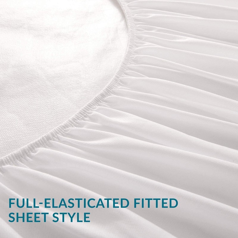 • The 6 Piece sheet Set Expertly tailored fully elasticized fitted sheet with the durable elastic that goes all the way around the fitted sheet will snugly fit all mattresses 18" deep!