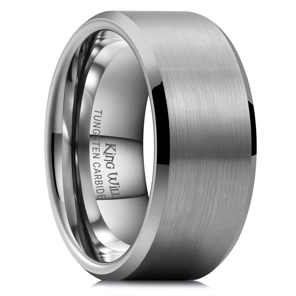 King Will 10mm Basic Tungsten Wedding Band for Men - Gunmetal Ring, Comfort Fit, Size 7
