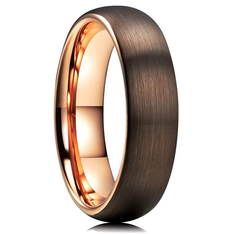 - FASHION DESIGN: Duo 6mm dome brown Tungsten Carbide wedding ring rose gold inside suitable for men.