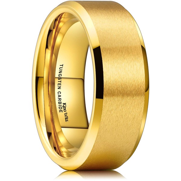 King Will 8mm Basic Wedding Ring For Men and women Gold Electroplated Tungsten Ring with Brushed Matte Surface Smooth Beveled Edge Comfort Fit 12