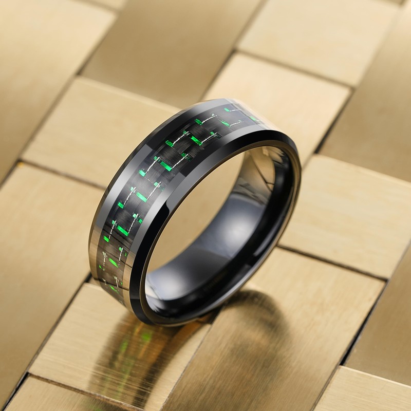 - GENTLEMAN WEDDING BAND FOR MEN: Features with high polished beveled edge with plaid carbon fiber inlaid, the 8mm black mens rings can be used as wedding/engagement/promise rings for gentleman