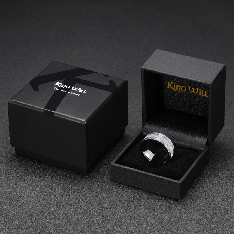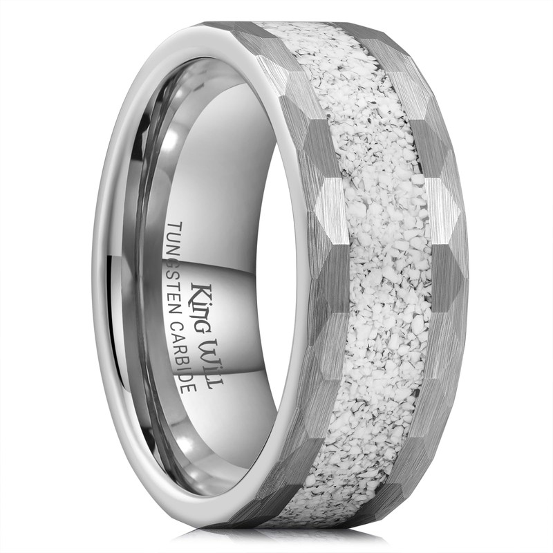 King Will 8mm Tungsten Rings For Men Gunmetal Wedding Band White Sand Inlay Engagement Ring Comfort Fit Size 9