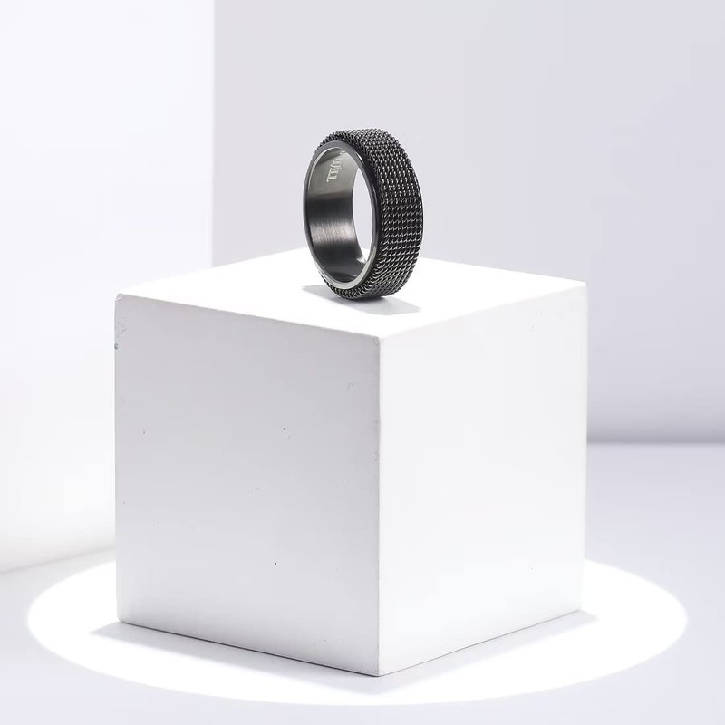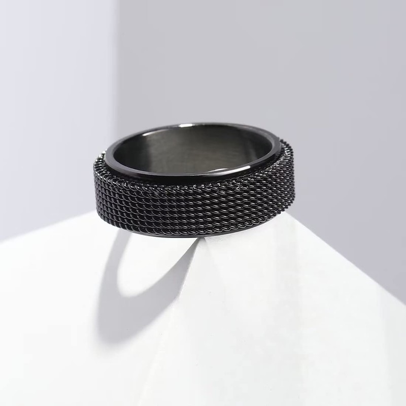 King Will Black 8mm Stainless Steel Chain Mesh Simple Plain Spinner Anxiety Ring for Women Men Wedding Band Ring Fidget Ring Mesh Chain Woven Mesh 9