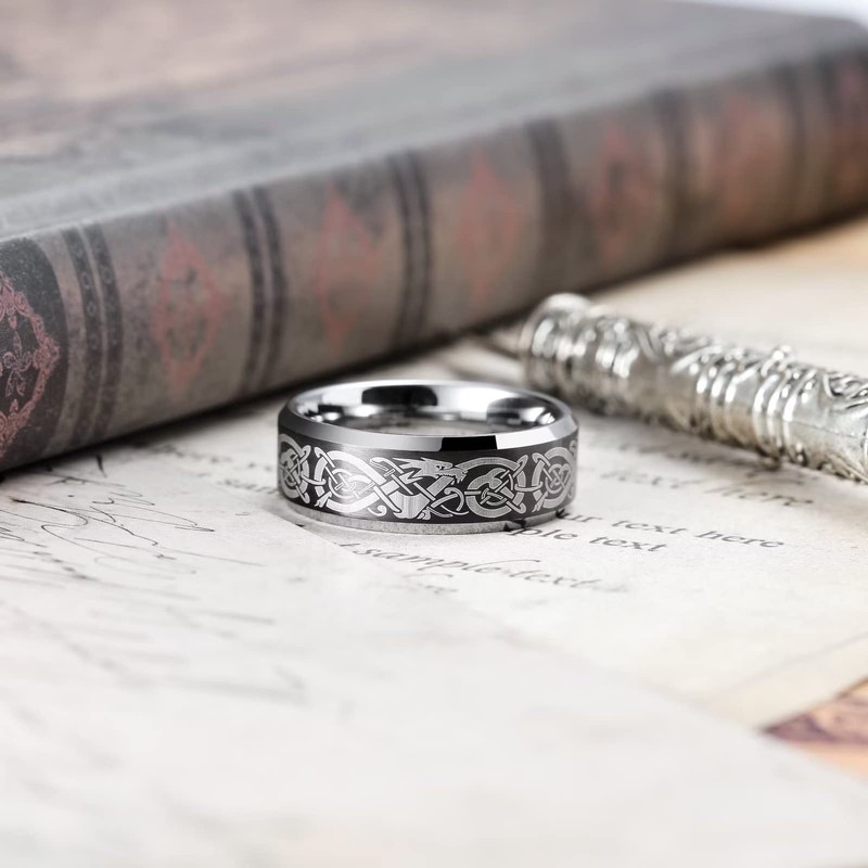 - COOL DESIGN: Laser Silver Celtic Dragon Tungsten Ring, celtic dragon ring is a symbol of our endless circle without end.