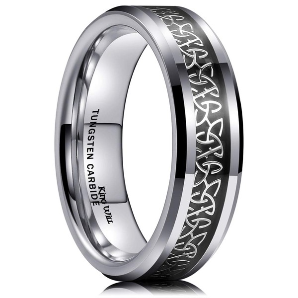 King Will Classic Tungsten Carbide Ring Inlay Celtic Knot 6mm Wedding Band for Men Engagement Ring Comfort Fit 7.5
