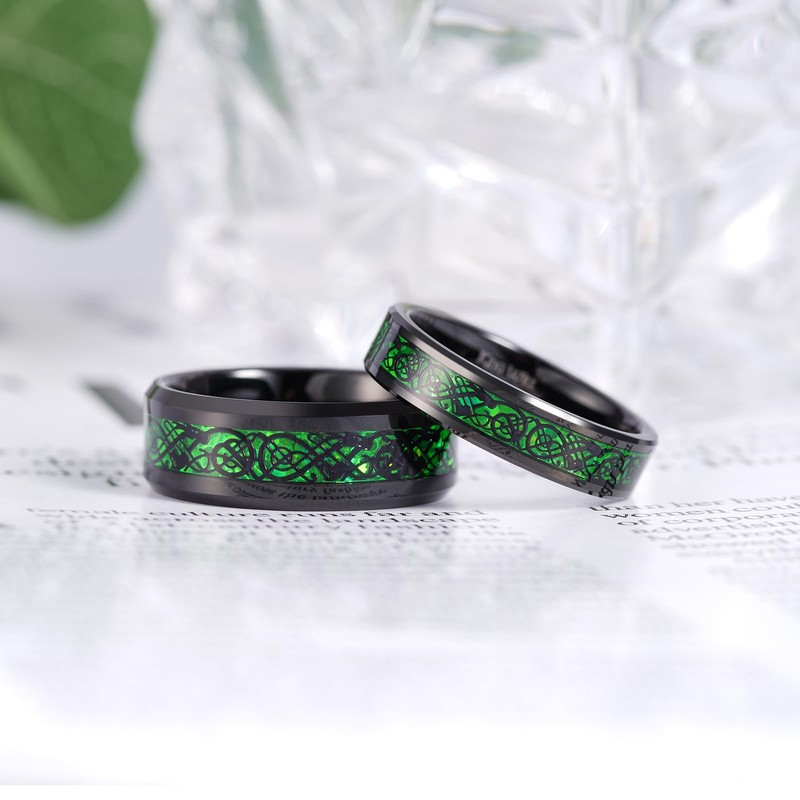 - ✔️CLASSIC DESIGN:Green & BlackCeltic Dragon Tungsten Carbide Mens Wedding Band Ring Comfort Fit.