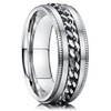 - ✔️UNIQUE DESIGN: Silver Edge Serrated Spinner Ring Fidget Anxiety Ring for Men with Curb Chain Inlay.
