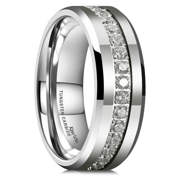 King Will Mens Cubic Zirconia Wedding Ring - Tungsten Carbide 8mm Comfort Fit Band, Polished Silver Engagement Anniversary Rings for Him V 1/2 (11)