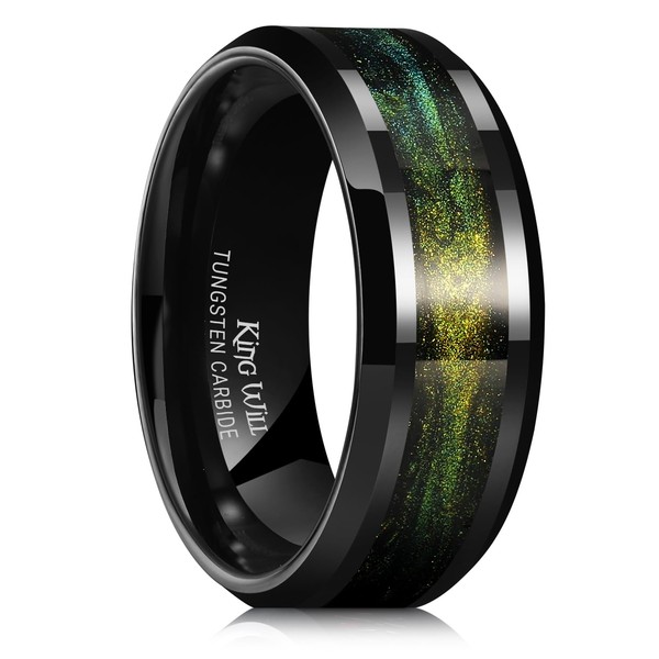 King Will Mens Tungsten Wedding Bands 8mm Black Mens Ring Inlay Yellow&Green Sand Male Engagement Ring Edge Polished Daily Wear Comfort Fit Size 10