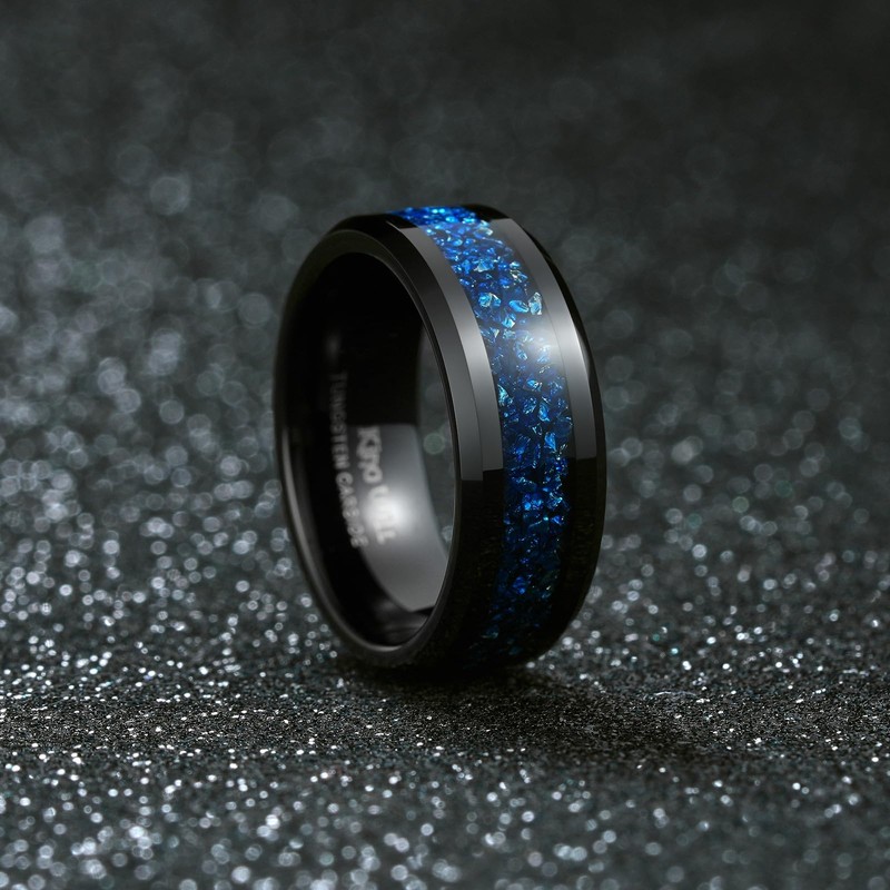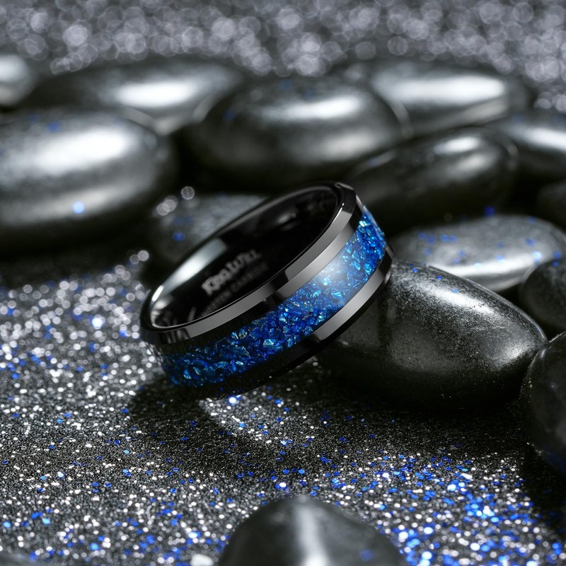 - Galaxy Collection丨Stunning black plated tungsten band with silver glitter inlays that sparkle like a galaxy. It is perfect for those who love to stand out and will add a touch of magic to your look. Don't miss this chance to own this amazing tungsten ring.