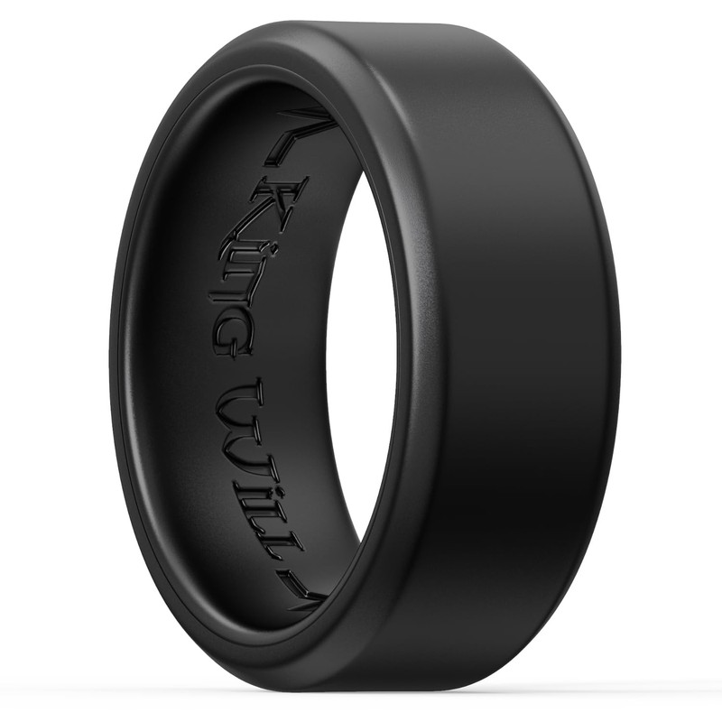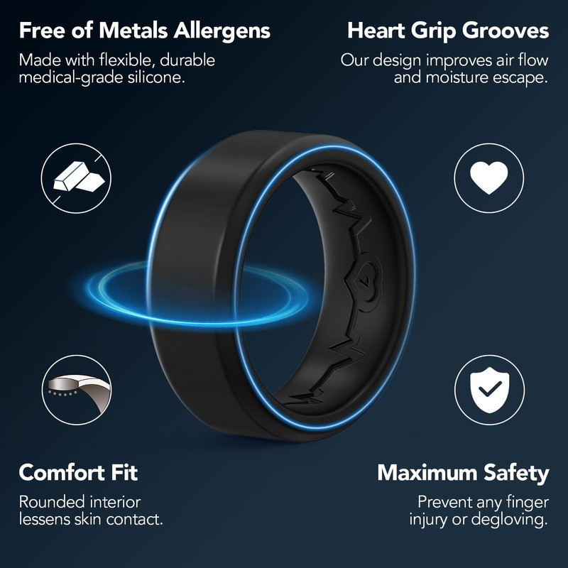 King Will Silicone Rings for Men - 8mm Wide Breathable Rubber Engagement Bands,Inner Heatbeat Design, Comfort Fit Ring, Black, Size 9
